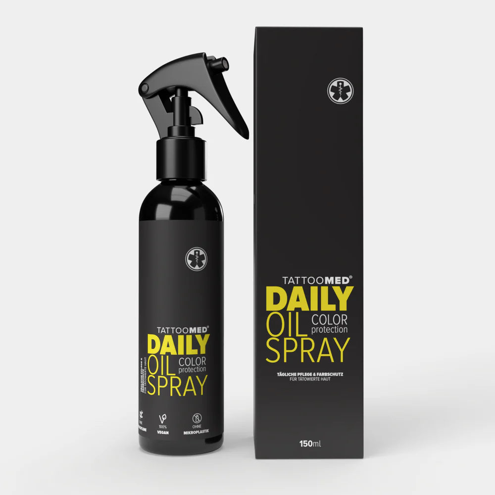Még soha nem volt ilyen egyszerű! Naponta zuhanyozás után permetezd be a TattooMed daily oil spray-vel. Ezután masszírozd be, hagyd rövid ideig hatni, és élvezd a friss illatot. Az olaj UV-védelmet is tartalmaz, és sima, puha bőrt biztosít. Még ha nem is vagy tetőtől talpig tetovált, ez a termék ideális napi társ, és megbízható védelmet nyújt a tetoválásodnak.